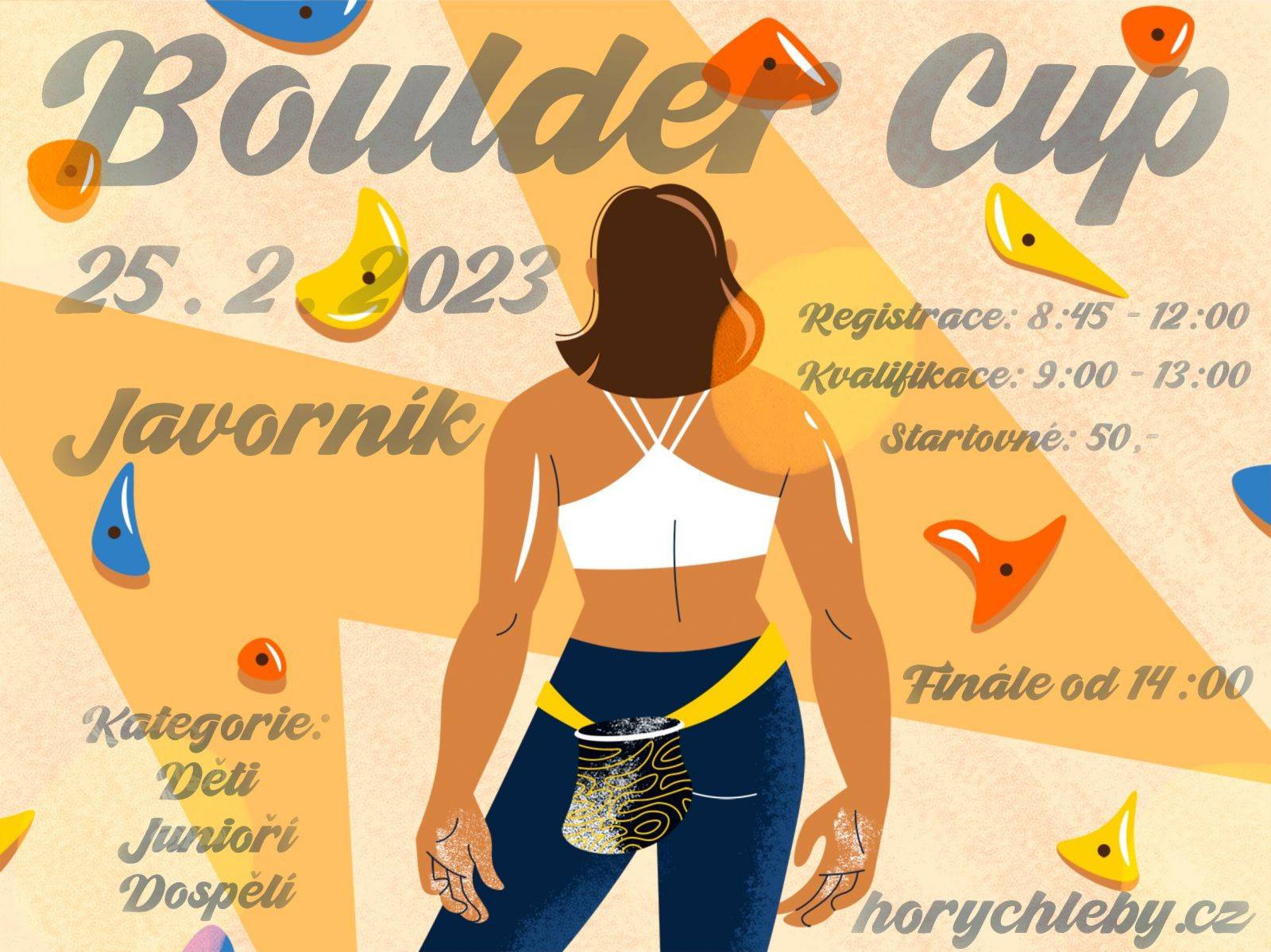 Boulder Cup - Javorník 25.02.2023 - HO Rychleby vás zve na tradiční závod v boulderingu. Registrace: 8:45 - 12:00 hodin Startovné: 50 Kč Kategorie: děti, junioři, dospělí Více informací na horychleby.cz. | |